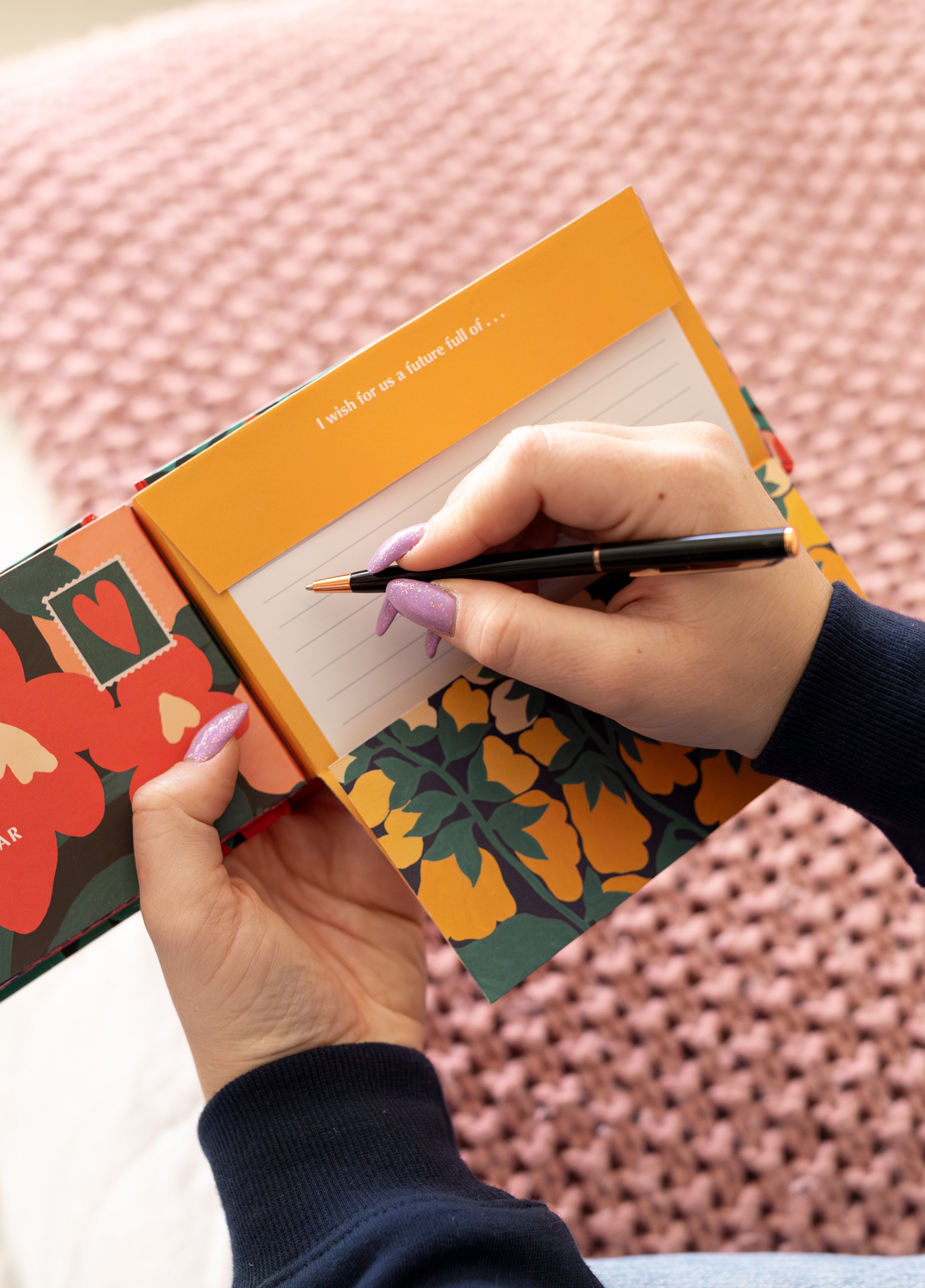 Is there anything sweeter than a handwritten love note? Put your love in writing using this keepsake collection of aerograms. It's like a dozen grand gestures in one. This innovative format gives romantics to a chance to share a dozen fold-and-mail letters to their beloved to be opened in the future.